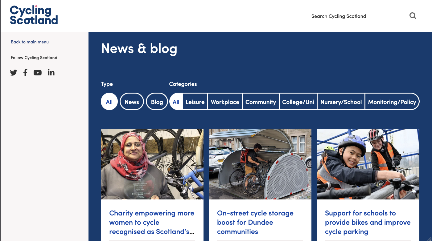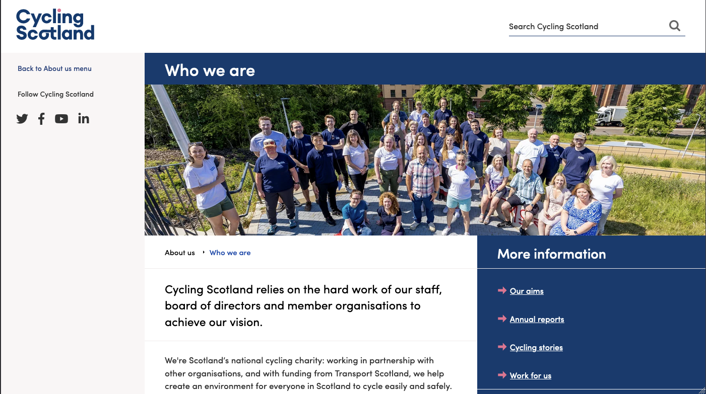 🅘 INFOContributed to several enhancement features for Cycling Scotland existing sites, to help their internal reporting, booking engine and CRM system (with Everyone)
