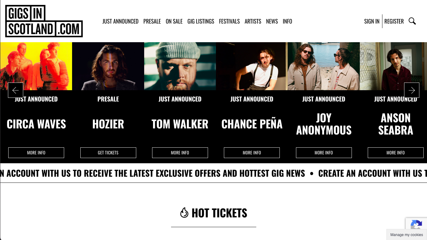 🅘 INFOWorked on the reskinning of the presale and on sale pages for Gigs in Scotland existing site (with Everyone).